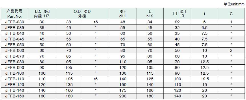 JF雙金屬系列規(guī)格尺寸